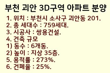 이렇게 부천 괴안 3D구역 재개발 아파트 분양계획을 정리했습니다.