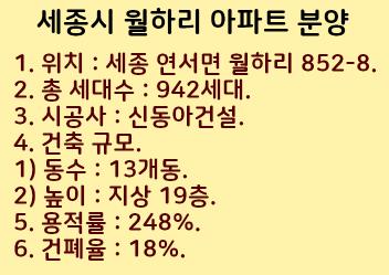세종시 월하리 아하트 분양계획을 정리했습니다.
