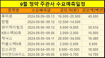 이렇게 2024년 9월 신규상장 주식일정을 표로 정리했습니다.