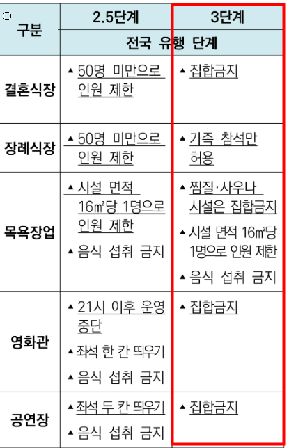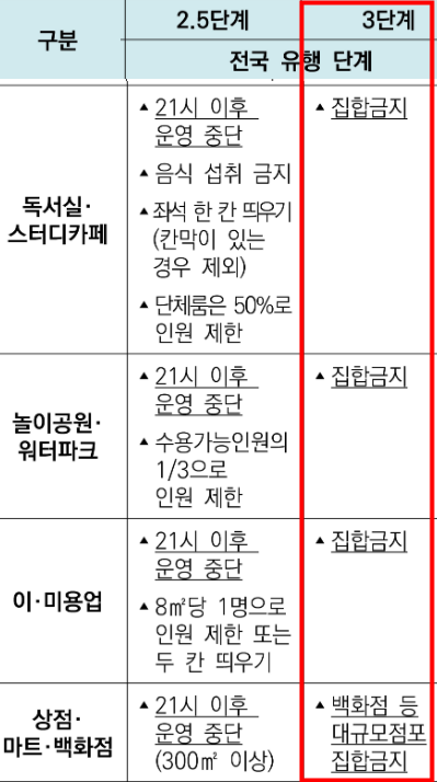 3단계 격상 조치가 아직안되었지만, 해당 내용을 미리 참조하시기 바랍니다.