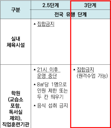 3. 학원, 교습소, 직업훈련기관 : 집합금지