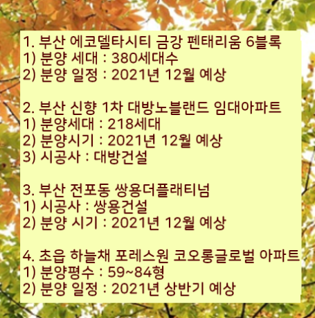 2021 부산 아파트 분양 예정계획을 알려드리겠습니다.