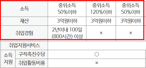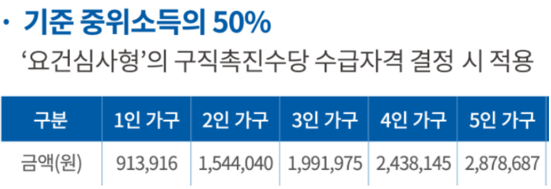 두번쨰. 구직촉진수당 소득 및 재산 조건