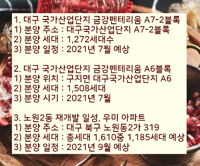 그리고 2021년 대구 아파트 분양 계획 및 일정을 위에서 참조하시기바랍니다.