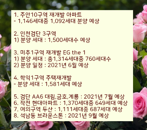 2021년에 인천에서 분양 예정중인 아파트 일정을 힘들게 모아서 총정리하였습니다.