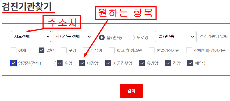 첫번째. 검진기관 병원 조회해서 찾기