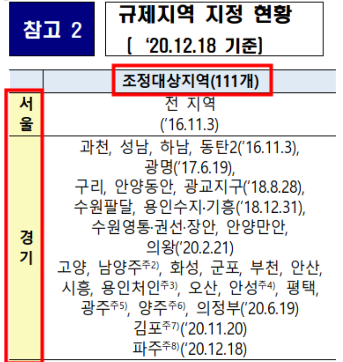 경기도의 조정대상지역 현황은 위에서 참조하시기 바랍니다.