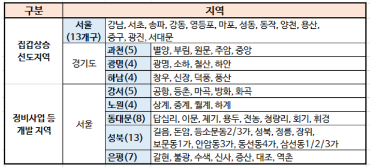 또한 대부분의 분양가 상한제 지정이 된 지역들입니다.