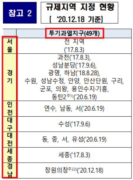 전국 조정대상지역 및 투기과열지구 최신현황을 2020년 12월18일 기준으로 규제지역자료로 알려드리겠습니다.