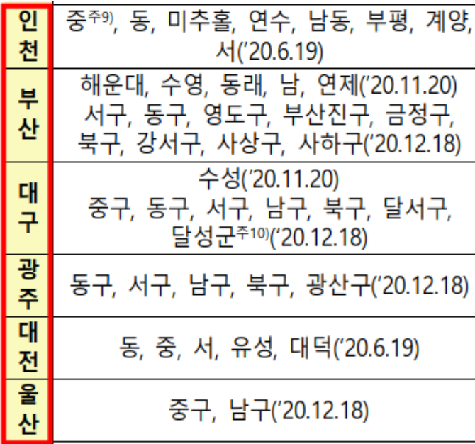 인천시 조정대상지역 현황을 아래에서 참조하시기 바랍니다.