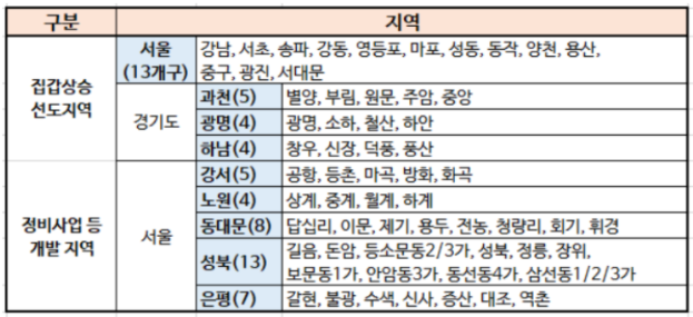 서울의 경우, 이미 분양가 상한제 지정지역으로 대부분 지정되었죠.