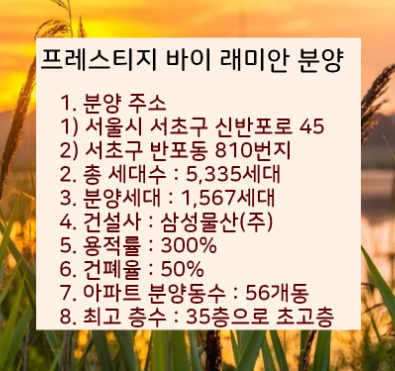 분양가 상한제 지정지역인 프레스티지 바이 래미안 아파트의 분양정보를 살펴보겠습니다.