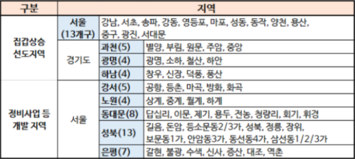 분양가 상한제 지정지역과 현황은 아래 참조하였습니다.
