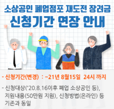 2020년 8월 16일이후에 폐업한 소상공인분들은 50만원의 재기 지원금을 받을수있습니다.