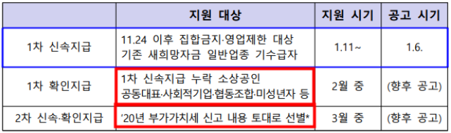 그리고 2차 신속확인지급자는 2020년 부가가치세 신고내용을 검토하고 선별해서 지급하는 자영업자 소상공인입니다.