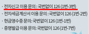 전자세금계산서, 현금영수증, 증명발급 이용문의도 가능하니 참고하세요.