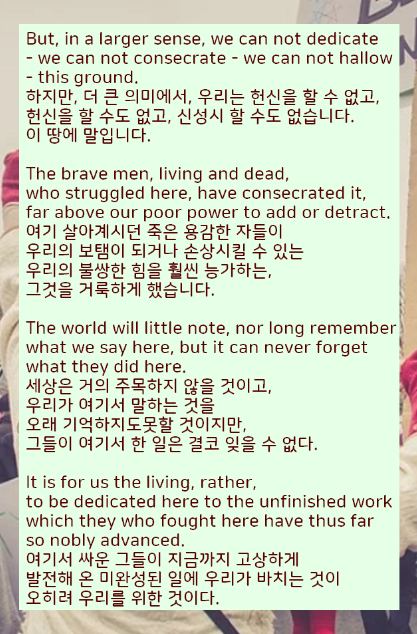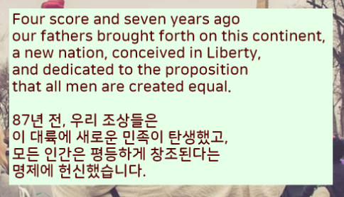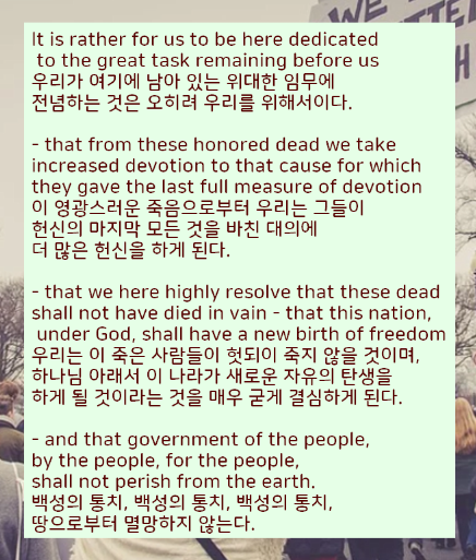 미국 펜실베니아 게티즈버그 지역에서 링컨이 연설한 영어와 한글 전문을 번역해서 올려드렸습니다.