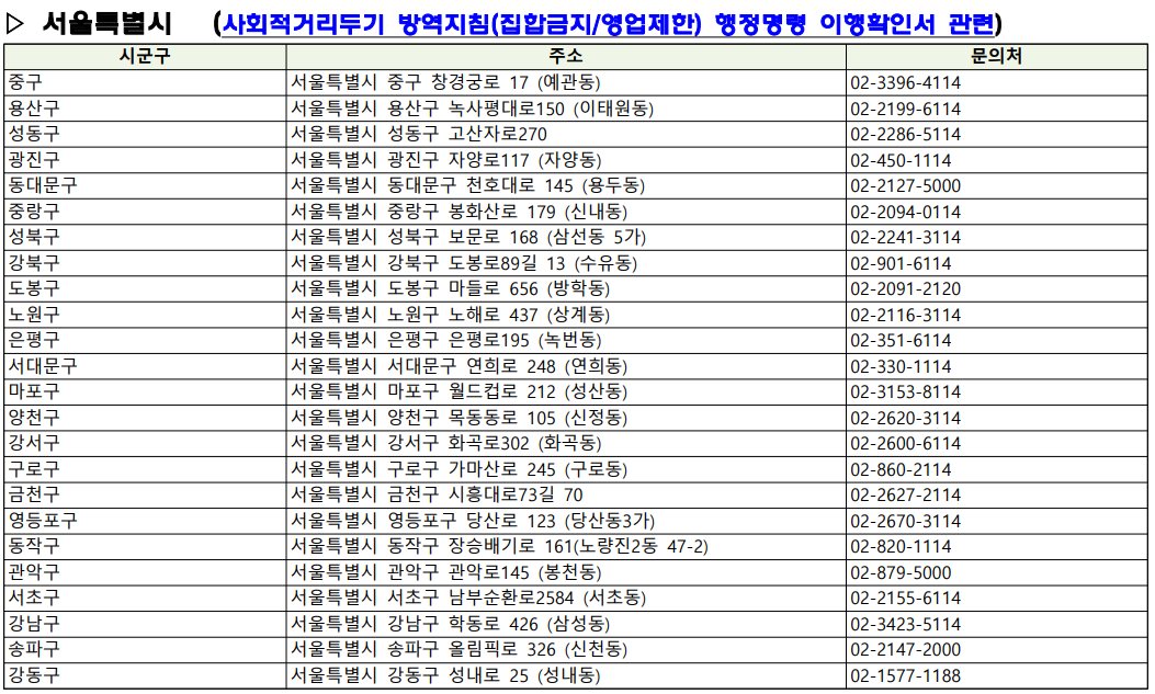 첫번쨰. 25일부터 지자체, 교육청에서 방역조치 행정명령 이행 확인서라고하는 이행확인서를 발급받으셔야하빈다.