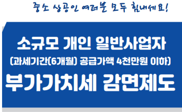 바로 소규모 개인 일반사업자에게는 부가가치세 감면제도를 지원하고있습니다.
