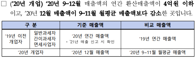 3. 4억이하의 매출액과 12월 매출액이 9~11월 매출보다 감소해야합니다.