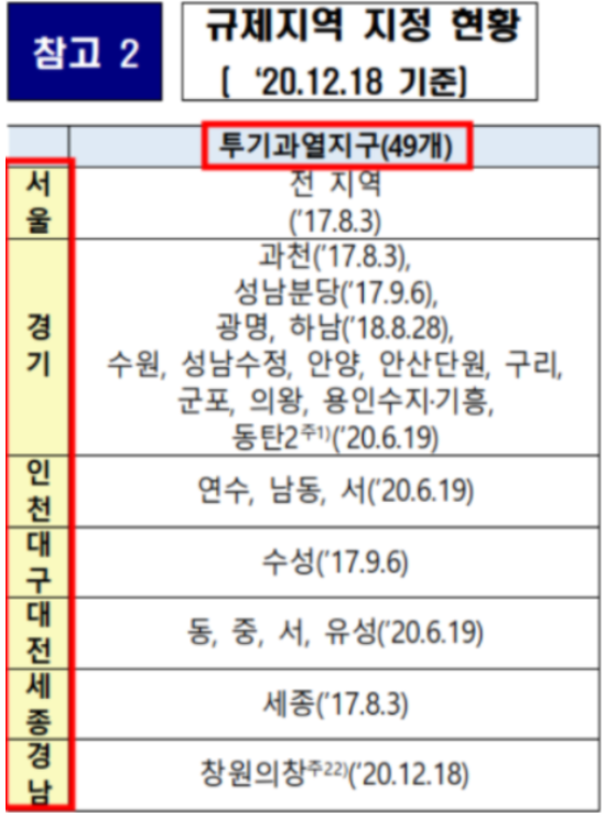 전국에 투기과열지구 및 조정대상지역 현황을 참고하시기 바랍니다.