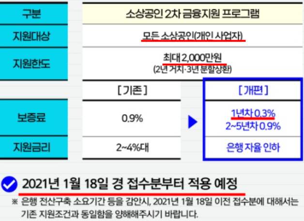 2021년 1월18일부터 소상공인 긴급 금융지원 최대 2,000만원 지원금을 신청할수있습니다.