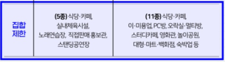집합제한업종의 경우, 위에 코로나 2단계에서 5종, 2.5단게에서 11종으로 참고하시기 바랍니다.