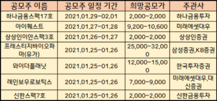 2021년 2월, 3월 공모주 청약일정표를 참고하셔서 본인이 잘아는 공모주 IPO에 지원하시기 바랍니다.