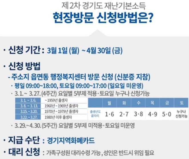 또한 제2차 경기도 재난기본소득은 현장방문 신청을 하실수있습니다.