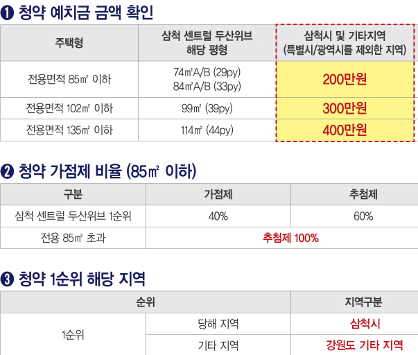 또한 삼척 센트럴 두산위브 청약의 장점으로는 추첨제 물량이 많다는겁니다.