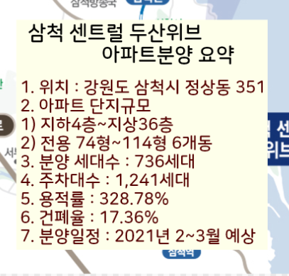 바로 강원도 삼척시에서 분양하는 센트럴 두산위브 아파트 분양정보를 알아보겠습니다.