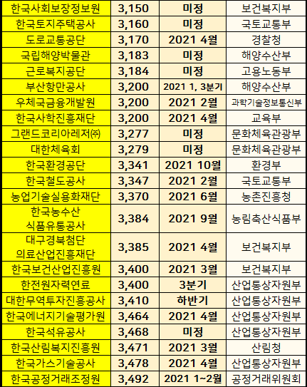 연봉공개가 안된곳과 개인별로 연봉이 다른 공기업도 있으니 이점 참고바랍니다.