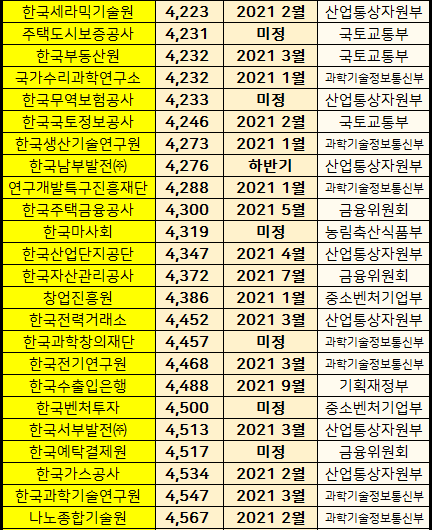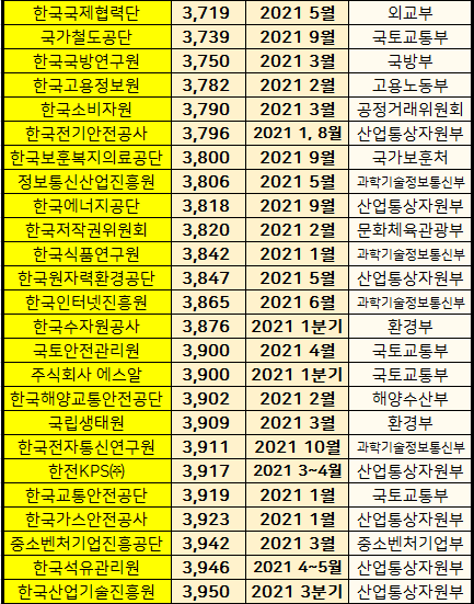 이렇게 2021년 대졸초임 기준으로 공기업 연봉순위를 표로 정리해봤습니다.