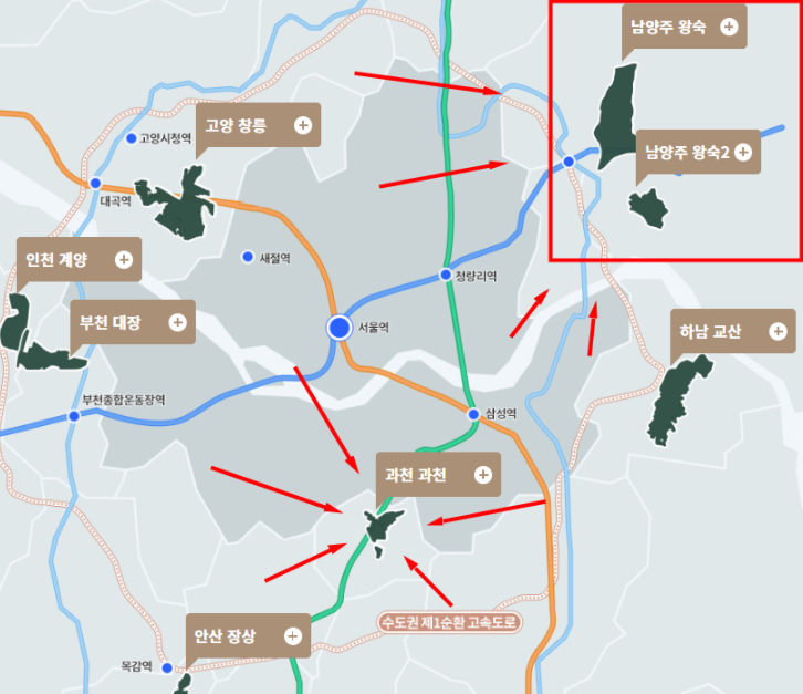 남양주 왕숙지구 3기 신도시의 위치 지도를 위에서 확인하세요.