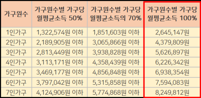 공공분양 아파트 사전청약은 기본적으로 가구원수별 가구당 월평균소득 100%를 따르는 경우가 많습니다.