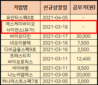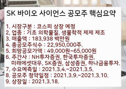 * Sk 바이오 사이언스 청약일정은 3.9.~3.10.입니다.
