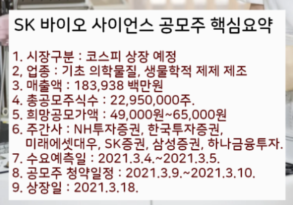 sk 바이오 사이언스 공모가는 65,000원이라고합니다.