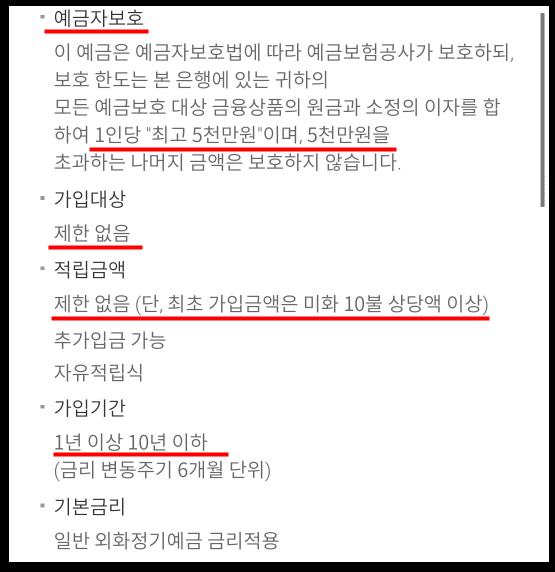 달러통장중에서 적립식 예금통장의 경우, 이번 포스팅에서 소개해드린 경우에는 1년 이상 10년이하 가입기간이 있습니다.