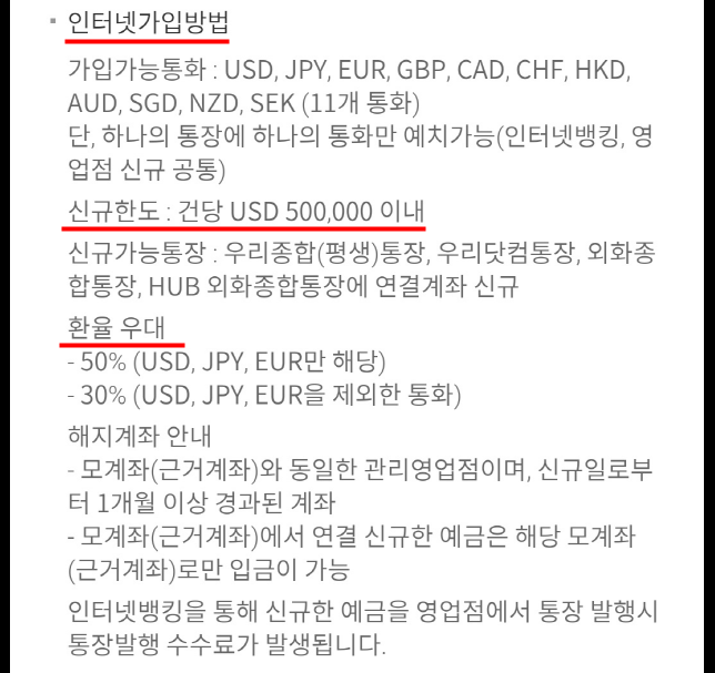 환율 우대로 미국 달러, 일본 엔화, 중국 위안화는 50%가 적용되고 나머지 국가들은 30%라고 나와있네요.