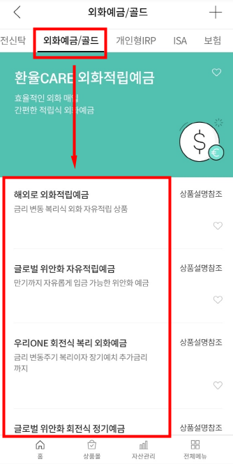 본인이 희망하는 외환 화폐를 통장을 선택해서 개설합니다.