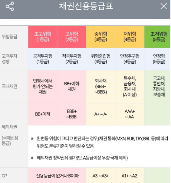 1. 1등급~2등급 채권 : 초고위험과 고위험채권으로 초보자분들에게 별로 추천드리지 않습니다.