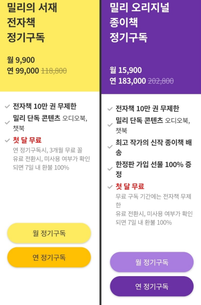 2. 전자책 무제한과 + 종이책을 2개월마다 받아볼수있는 유형이 있습니다.