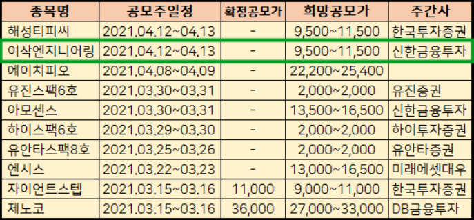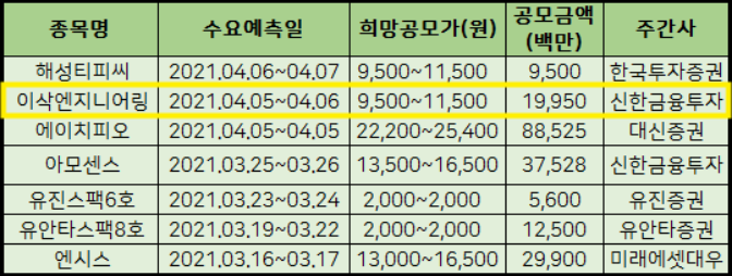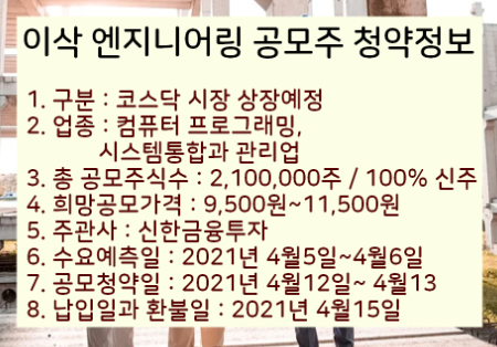 이삭엔지니어링 공모주 청약정보 (4월 청약일정표 첨부)