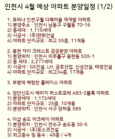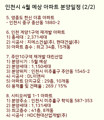 위에 정리한 수도권 4월 분양 아파트들은 예정 혹은 예상 계획입니다.
