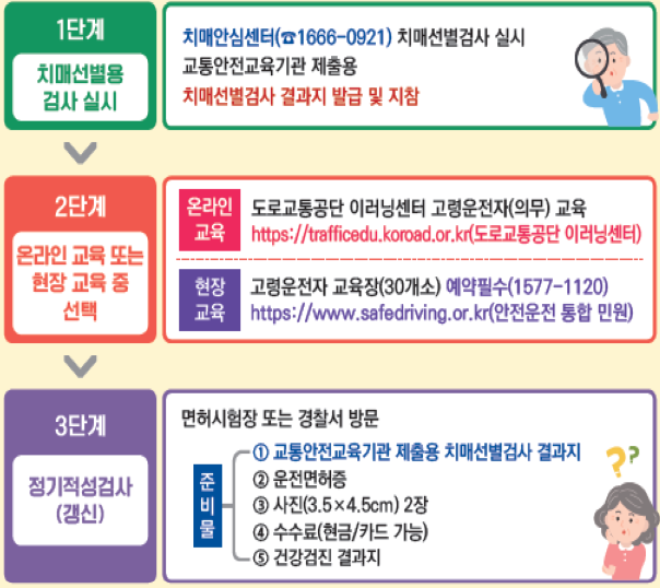 * 교통안전교육기관에 제출하는 치매선별검사 결과지를 발급받아 지참합니다.