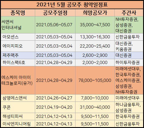 또한 위에서 2021년 4월에 상장될 공모주 청약일정을 알려드렸습니다.