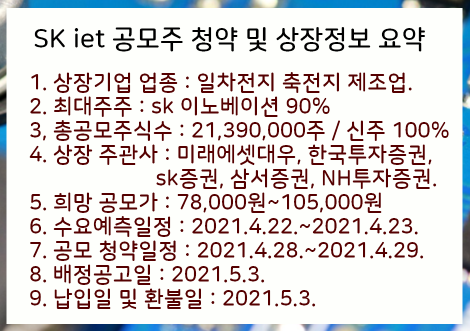 sk아이이테크놀로지는 코스피시장에 상장예정인 규모가 큰 청약이며, 청약경쟁률도 높을것으로 예상됩니다.