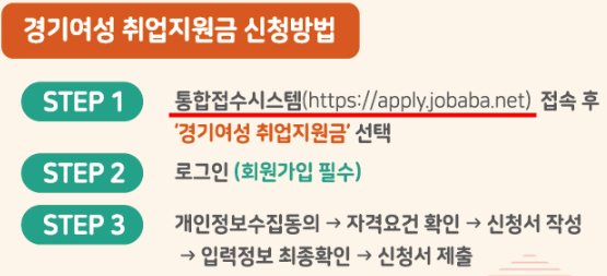 신청 홈페이지 : 통합접수시스템 '경기여성 취업지원금'