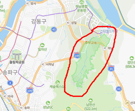 3. 왼쪽으로는 서울시 강동구와 송파구가 위치.