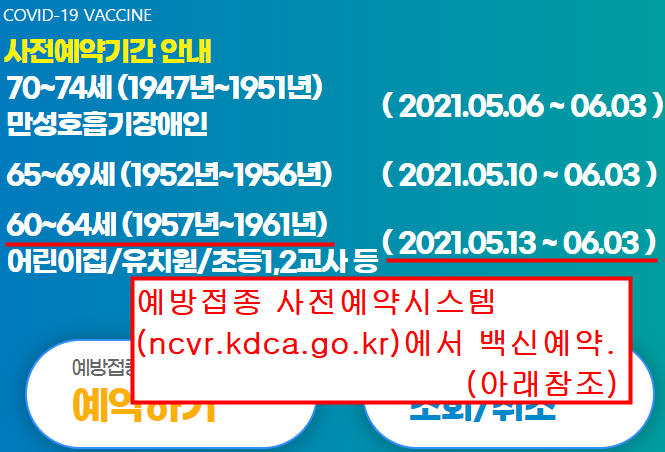 2. 65세부터 69세는 5월10일부터 6월3일까지 예약하시면됩니다.